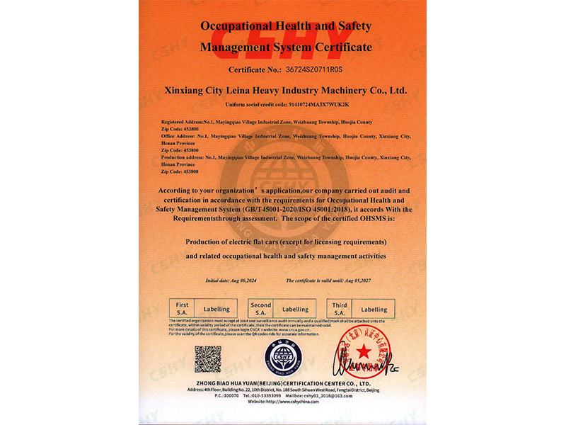 • 職業(yè)健康安全管理體系認證證書(英文)