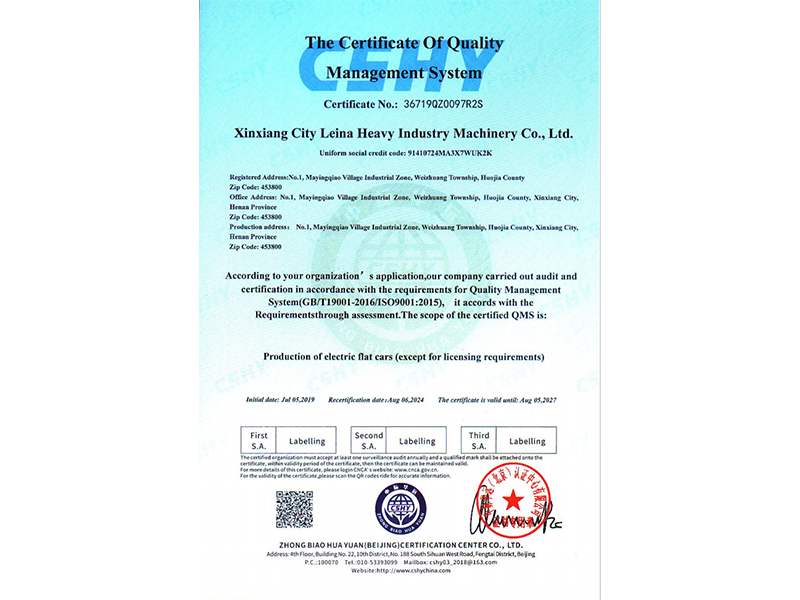 質(zhì)量管理體系認證證書(英文)