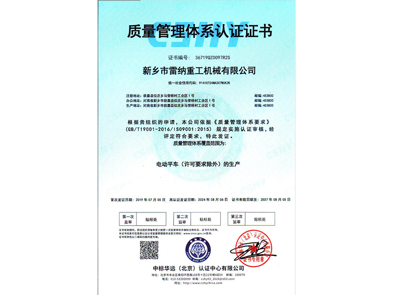 質(zhì)量管理體系認證證書